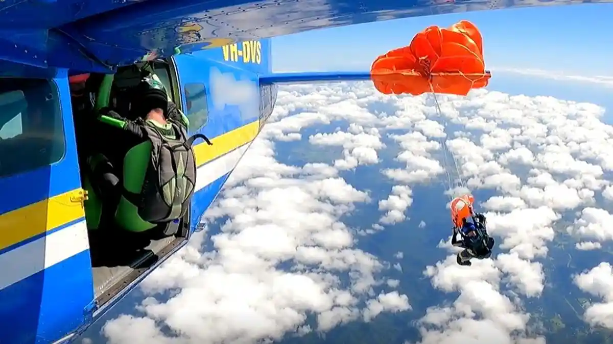 Meski sempat terkatung-katung, penerjun payung berhasil selamat setelah melepaskan diri dengan alat khusus, pisau kait.