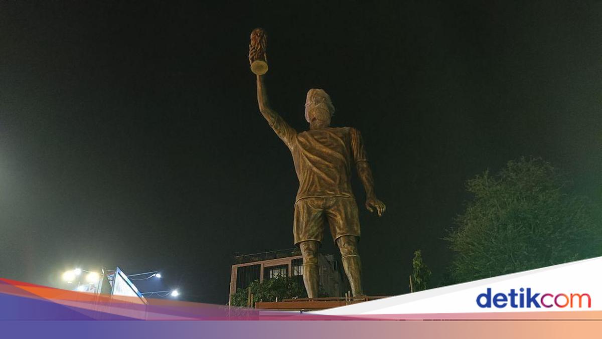 Penampakan patung raksasa Lionel Messi di India bikin warganet salah fokus (salfok). Sebab, ada yang menyebut wajah patung itu lebih mirip Cristiano Ronaldo.