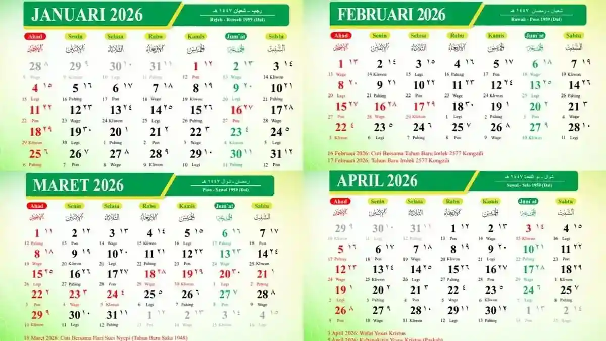 Inilah kalender 2026 lengkap dengan tanggal merah dan cuti bersama serta link download pdf-nya.