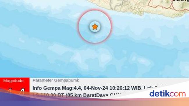 Gempa magnitudo 4,4 mengguncang perairan Gunungkidul, DIY, pukul 10.26 WIB. Begini keterangan dari BMKG.