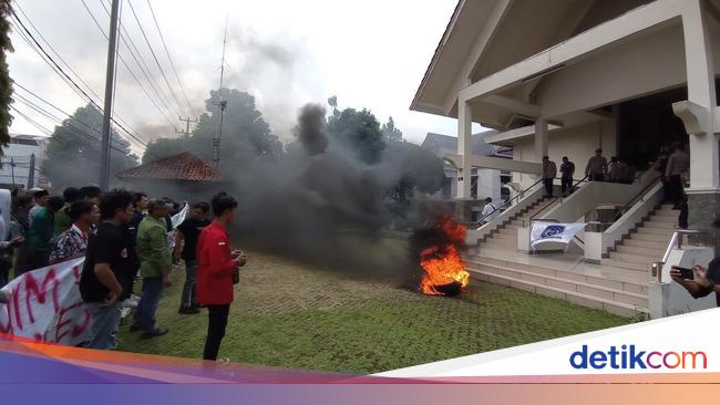Puluhan aktivis mahasiswa menggeruduk gedung DPRD Kota Tasikmalaya, Senin (6/5/2024). Mereka menggelar demonstrasi terkait masalah pendidikan.