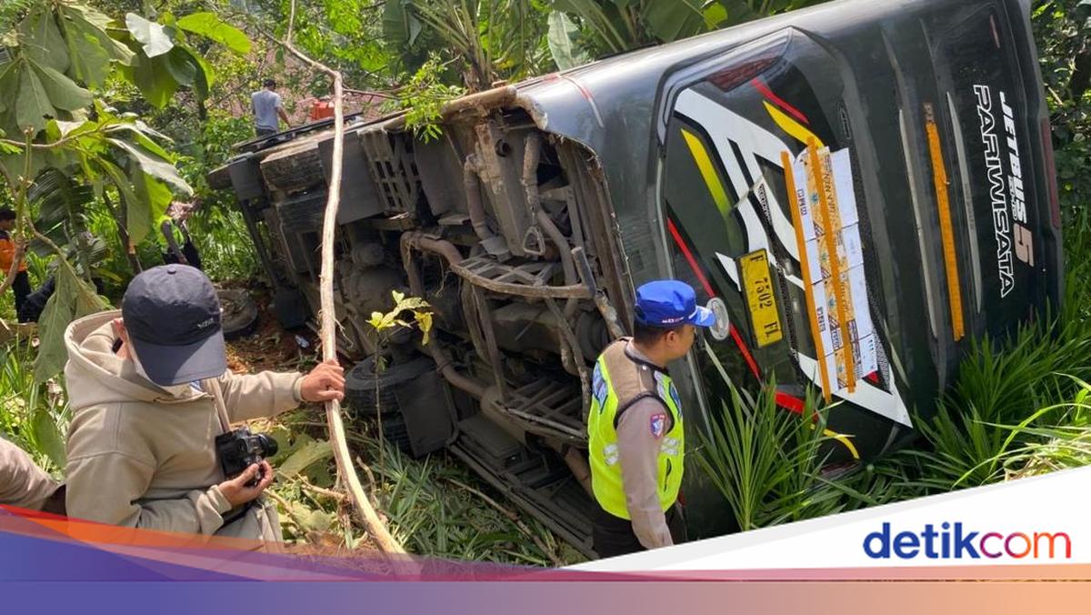 Bus yang membawa rombongan peziarah mengalami kecelakaan hingga terperosok di turunan jalan leter s Desa Tergo Kecamatan Dawe, Kabupaten Kudus, Jawa Tengah.