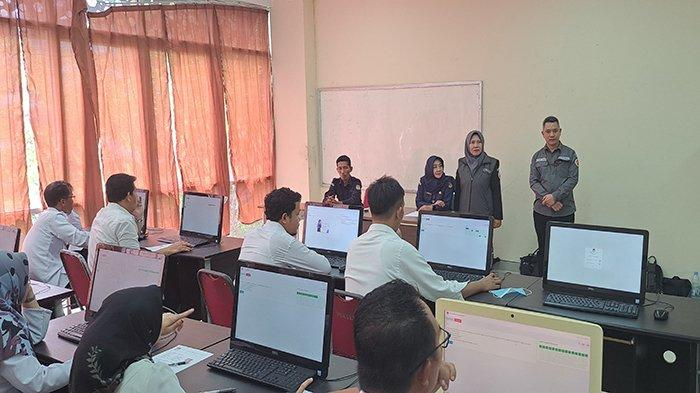 Pelaksanaan tes tertulis menggunakan sistem CAT di SMKN 1 Sanggau, Kalimantan Barat, kemarin.