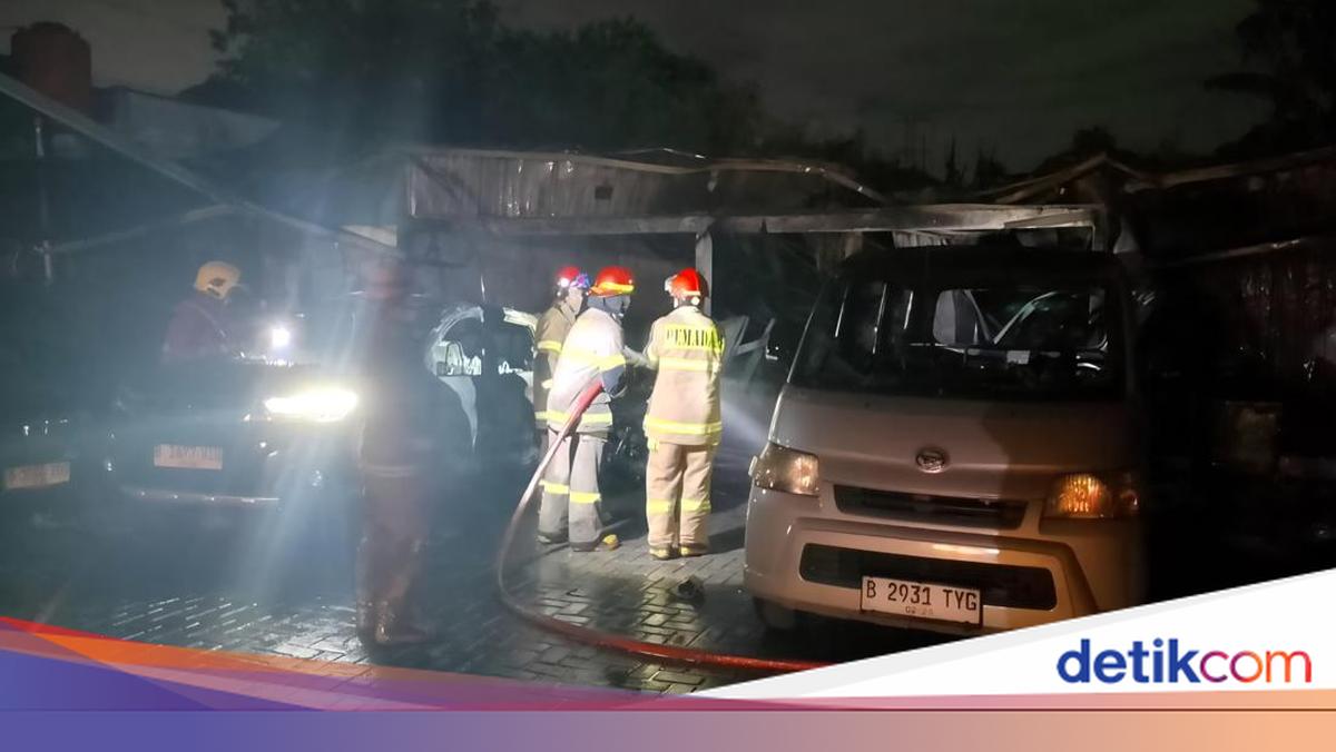 Kantor rental dan car wash di Bojongsari, Depok terbakar akibat korsleting listrik. Empat mobil hangus terbakar.